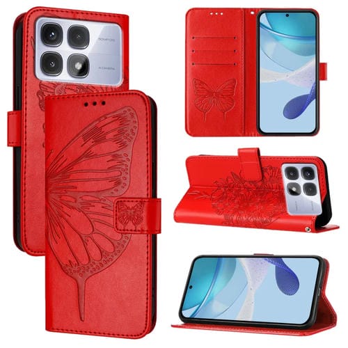 Funda de Cuero con Relieve de Mariposa para Redmi K70 Ultra 5G (Rojo)