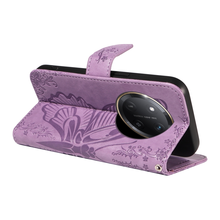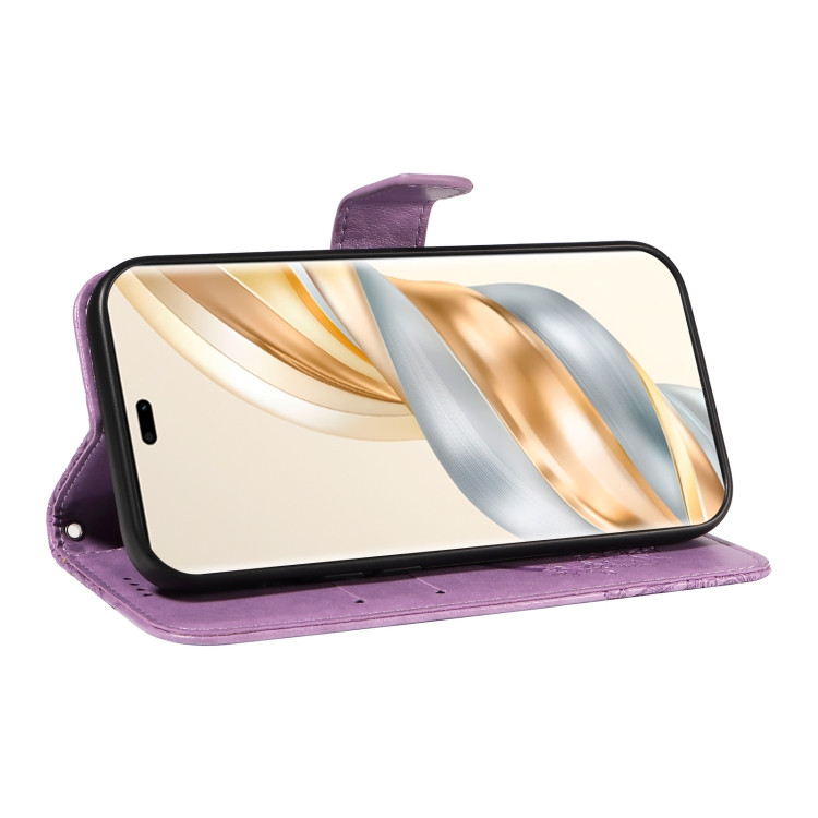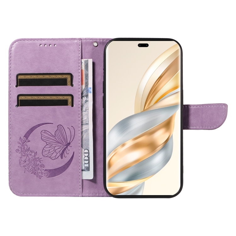 Funda de Cuero con Relieve de Mariposa para Honor X9C 5G (Morada)