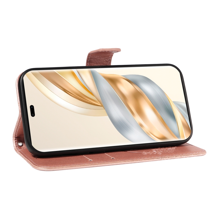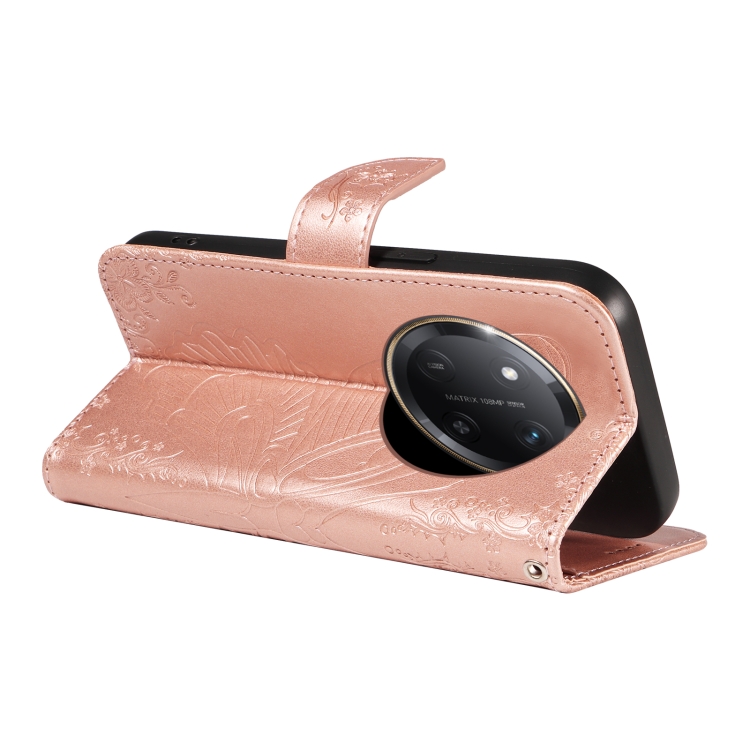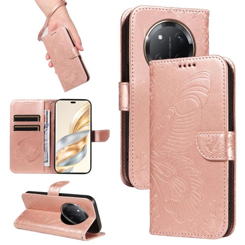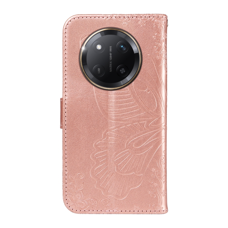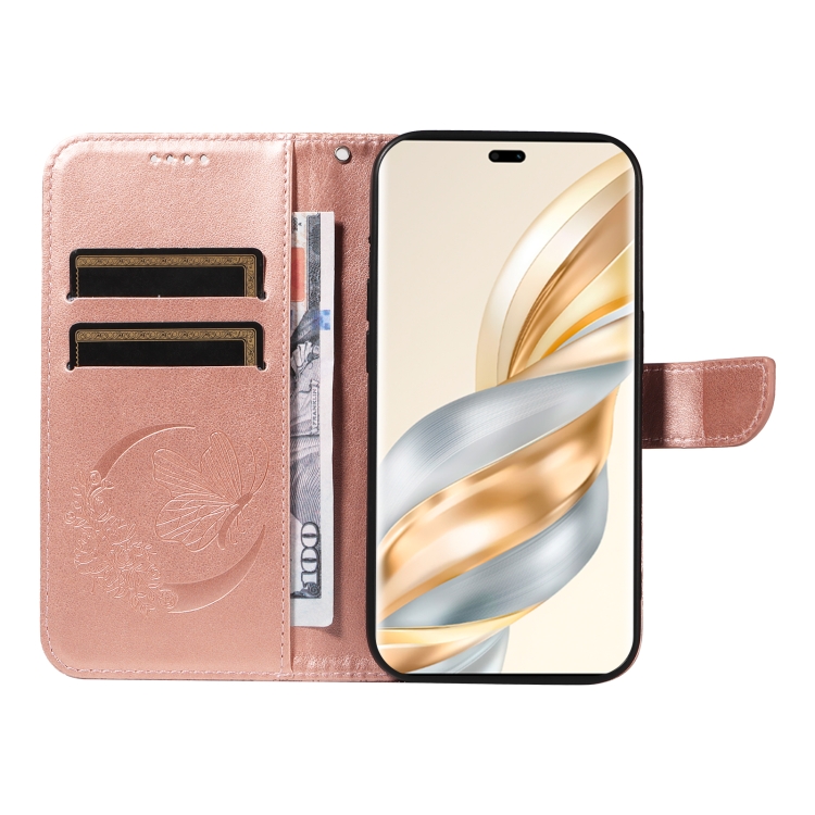 Funda de Cuero con Relieve de Mariposa para Honor X9C 5G (Oro Rosa)