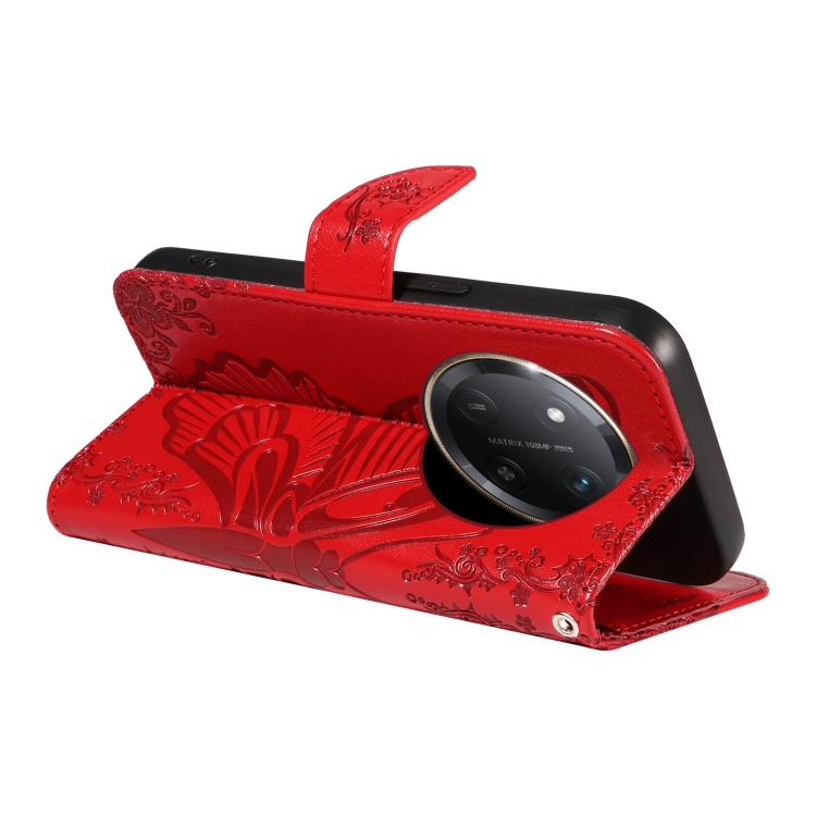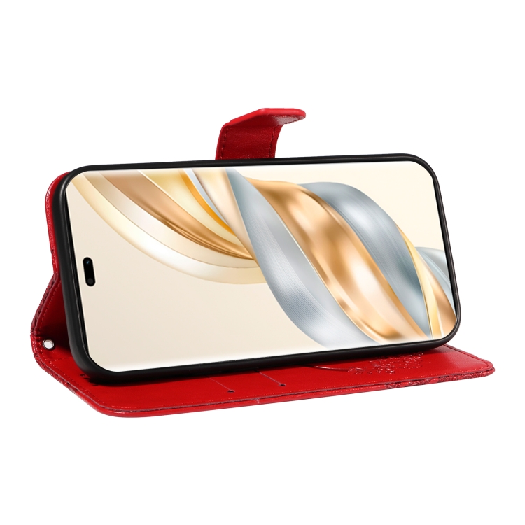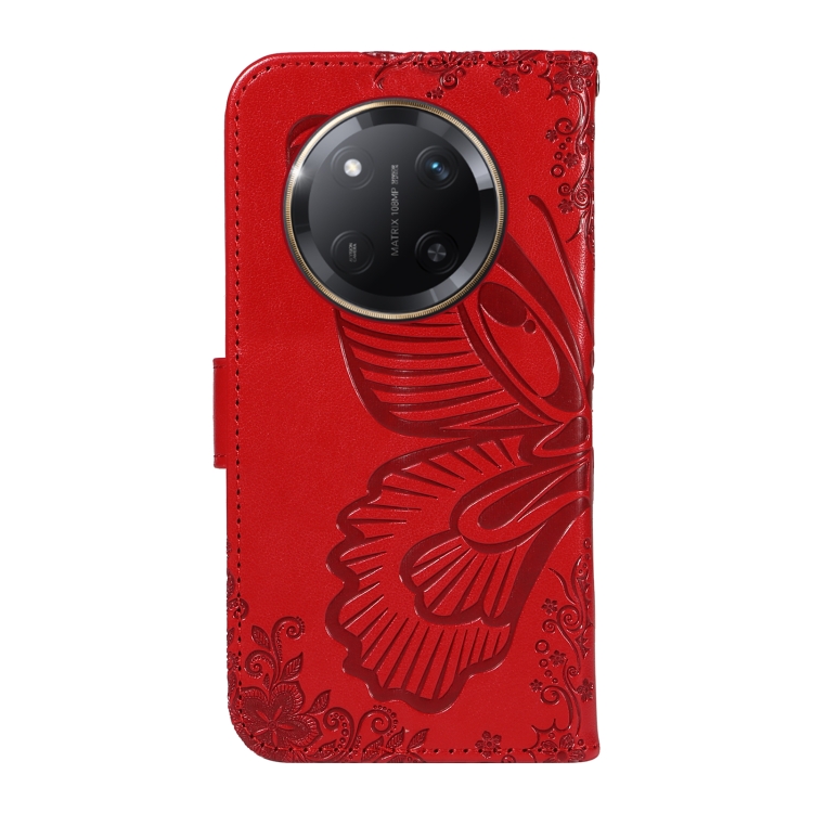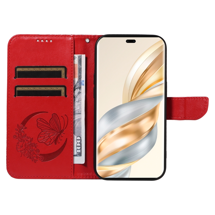 Funda de Cuero con Relieve de Mariposa para Honor X9C 5G (Rojo)