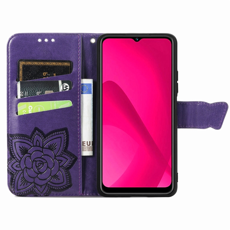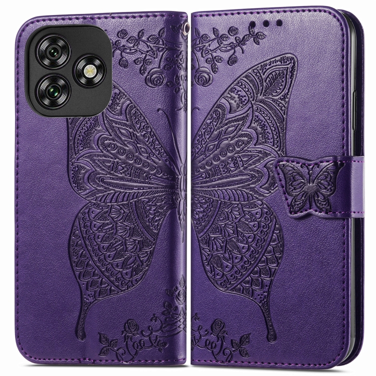 Funda de Cuero con Relieve Mariposa y Flor para Oukitel C53 (Morado)