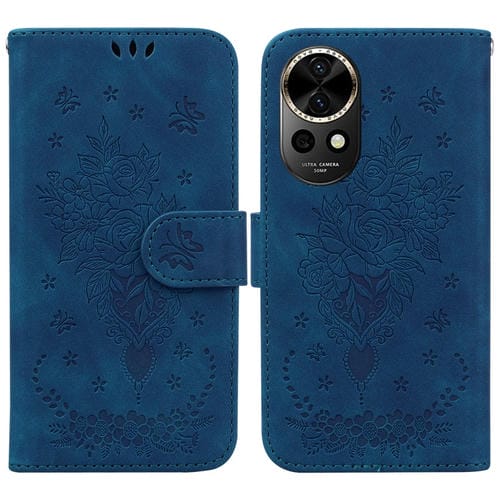 • 1x Funda de Cuero con Relieve Mariposa y Rosa para Huawei Nova 12 (Azul)