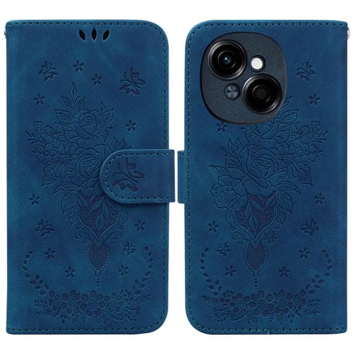 Funda de Cuero con Relieve Mariposa y Rosa para Tecno Spark Go 1 Pop 9 Pro (Azul)