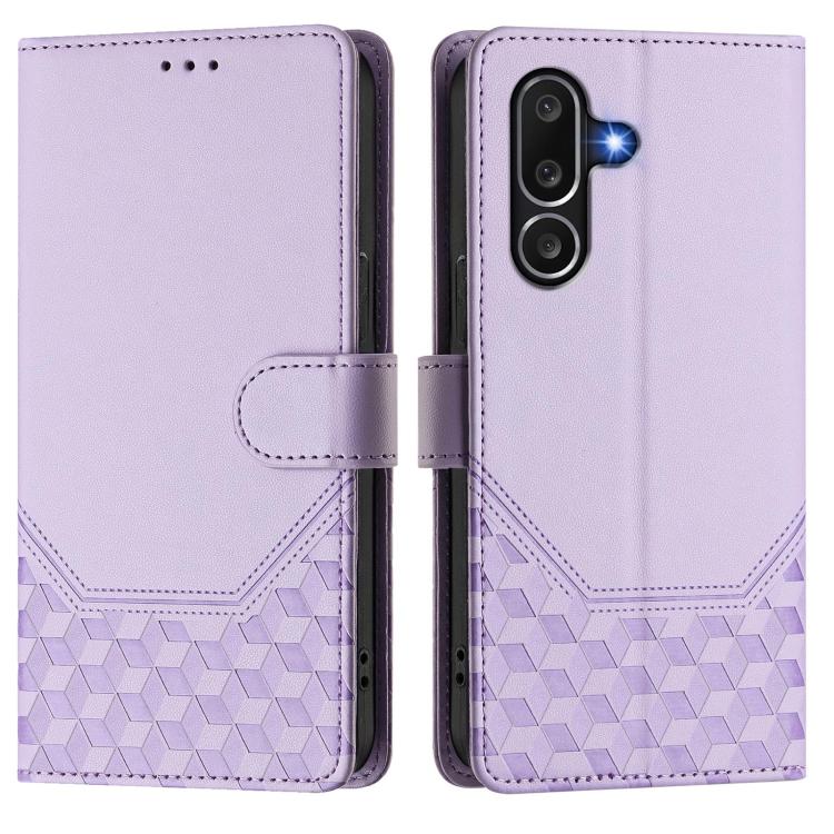 Funda de cuero con relieve de panal RFID para Samsung Galaxy M56 5G (morado claro)
