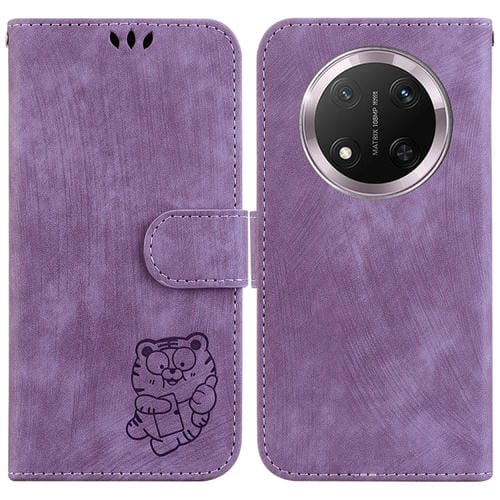 Funda de Cuero con Relieve de Tigre para Honor X9C (Morado)