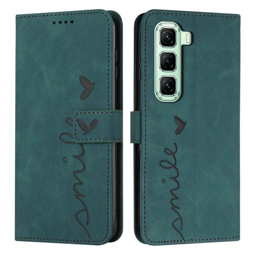 Funda de Cuero con Relieve Corazón para Infinix Hot 50 4G (Verde)