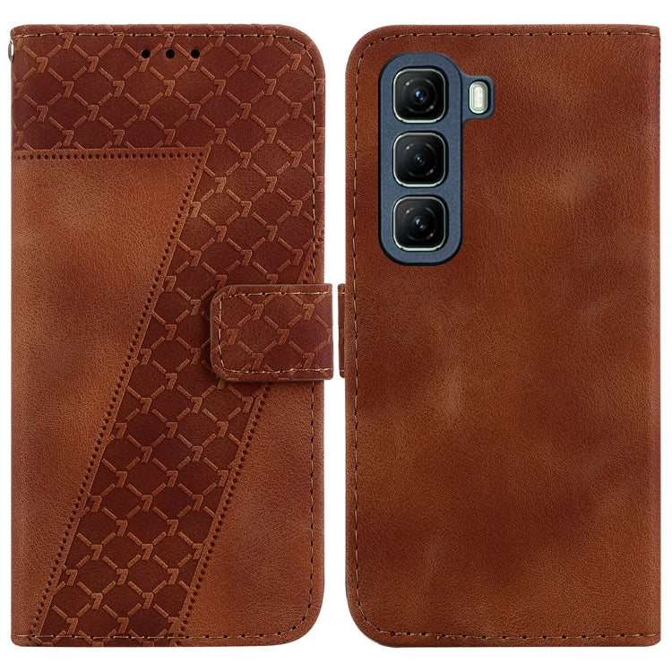 Funda de Cuero con Relieve en Forma de Siete para Infinix Hot 50 4G (Marrón)