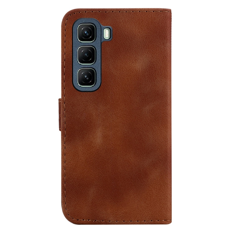 Funda de Cuero con Relieve en Forma de Siete para Infinix Hot 50 5G (Marrón)