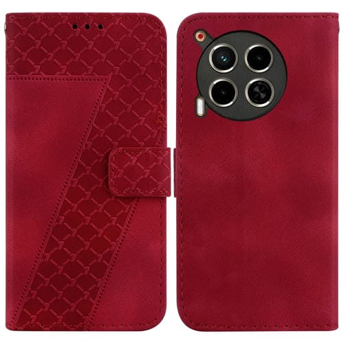 Funda de Cuero con Relieve en Forma de Siete para Tecno Camon 30 4G/5G/Cl6/Cl7 (Rojo)