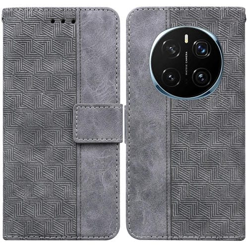 Funda de Cuero con Relieve Geométrico para Honor Magic7 Pro (Gris)