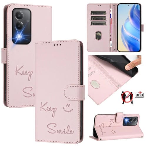 Funda de Cuero con Relieve Rfid para Teléfono Oppo K12X 5G Global Smile (Rosa)