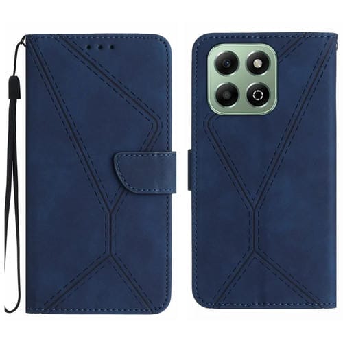 Funda de Cuero con Relieve y Costuras para Honor 200 Smart (Azul)