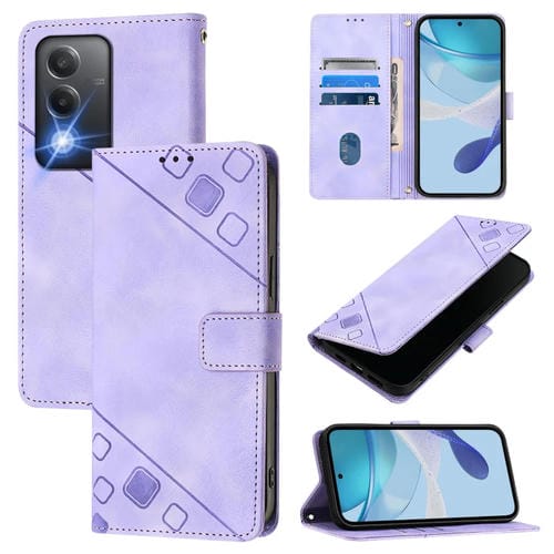 Funda de Cuero con Relieve y Tacto de Piel para Oppo K12X 5G (Morado Claro)