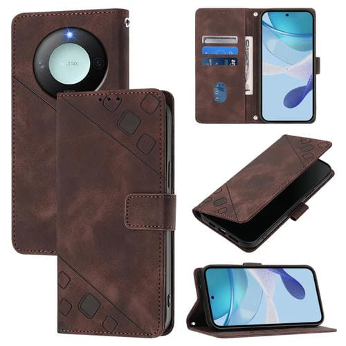 Funda de Cuero con Relieve y Tacto Suave para Honor X9C Smart 5G (Marrón)