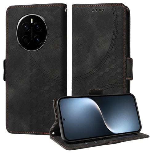 Funda de Cuero con Rombos y Estrellas en Relieve para Honor Magic7 (Negro)