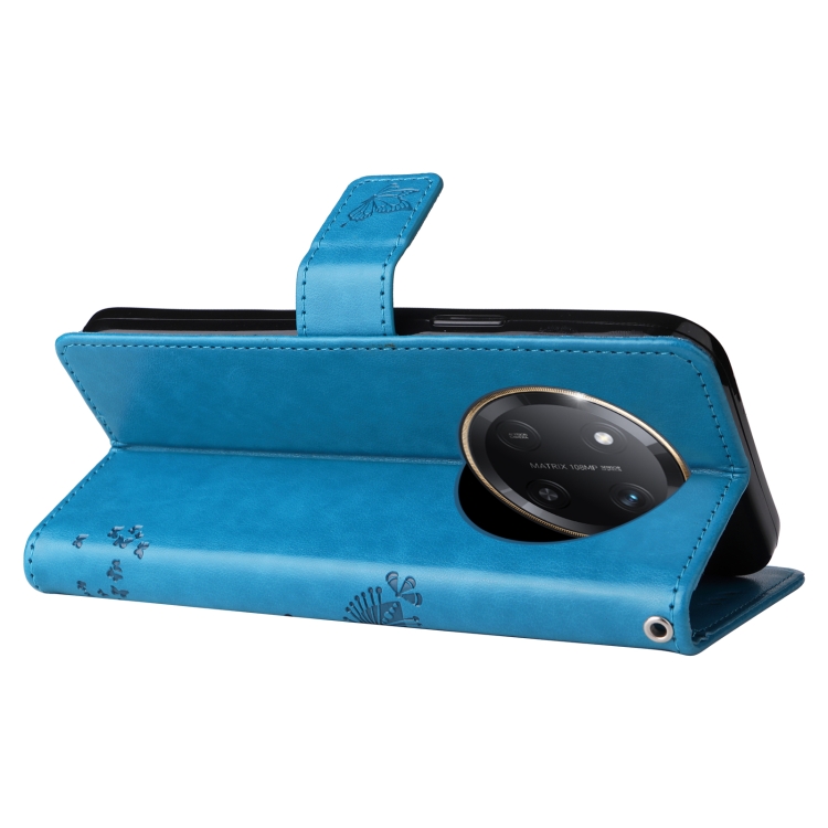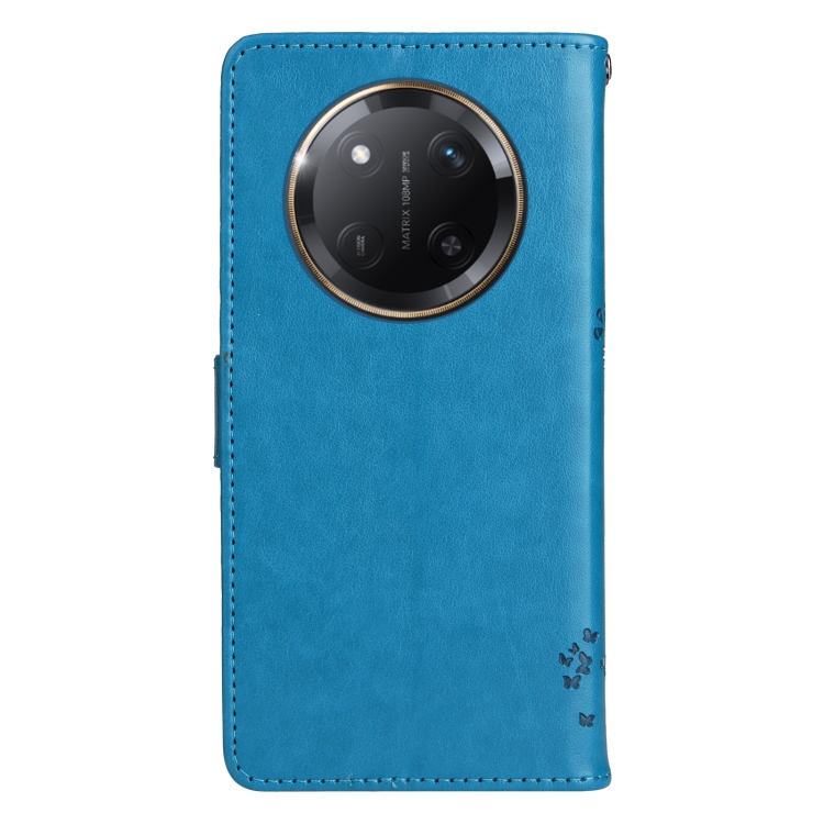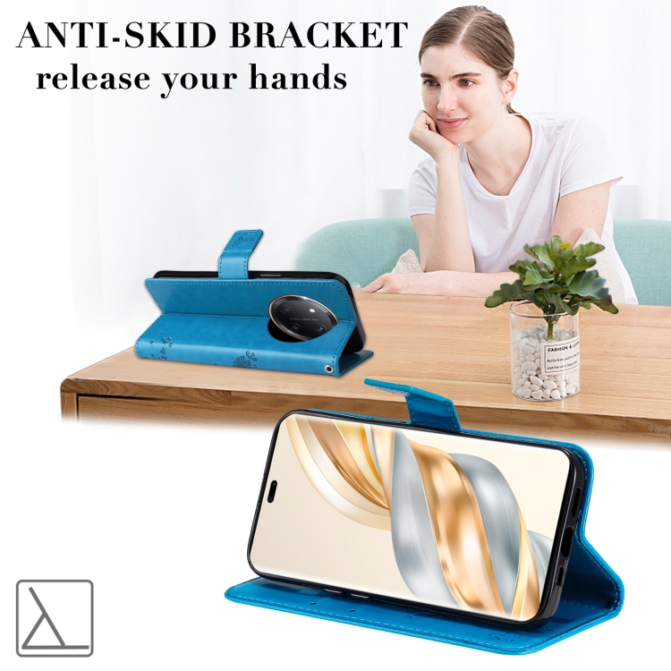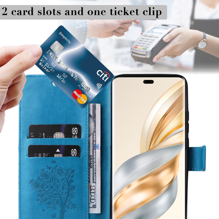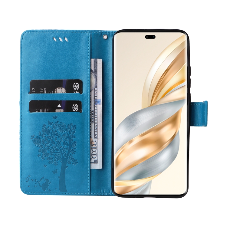 Funda de Cuero con Tapa y Estampado Árbol y Gato para Honor X9C 5G (Azul)
