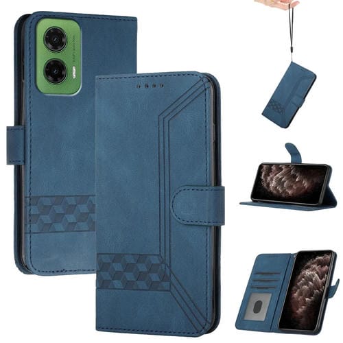 Funda de Cuero con Tapa Cúbica para Motorola Moto G35 (Azul)