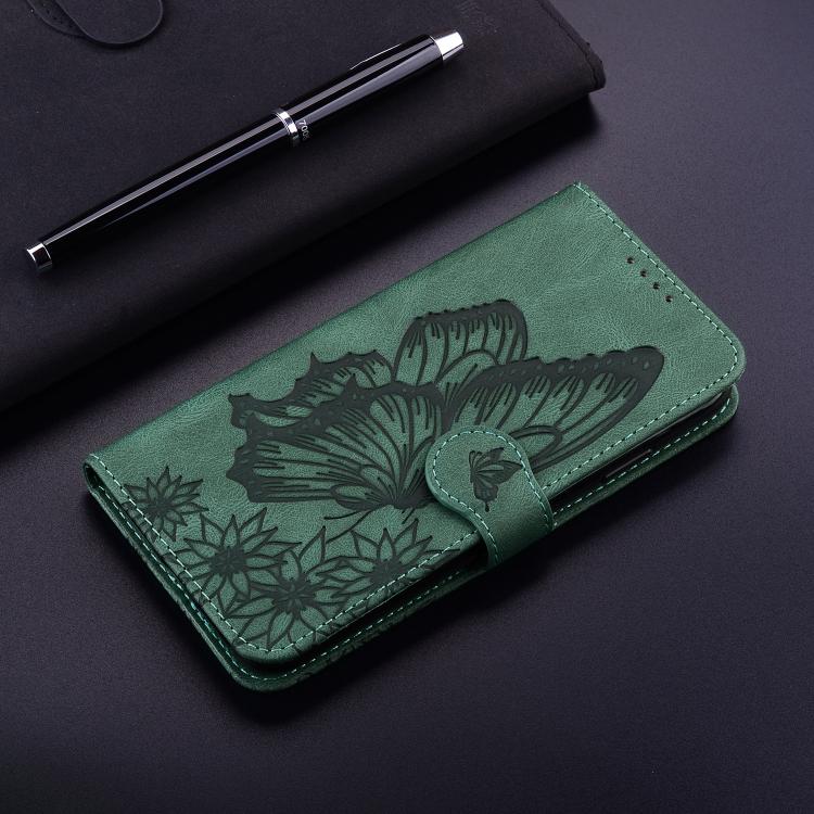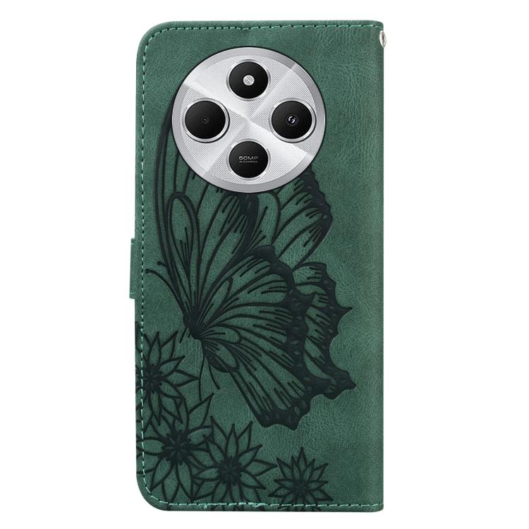 Funda de Cuero con Tapa Horizontal con Diseño de Mariposas En Relieve y Tacto Retro para Redmi A4 5G (Verde)