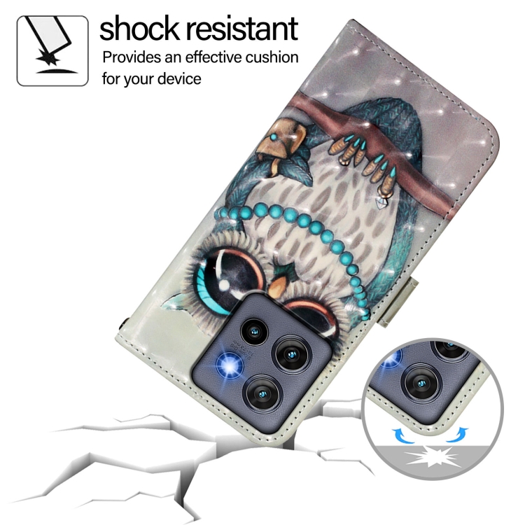 Funda de Cuero con Tapa Horizontal y Pintura 3D para Motorola Edge 50 Neo (Búho Gris)