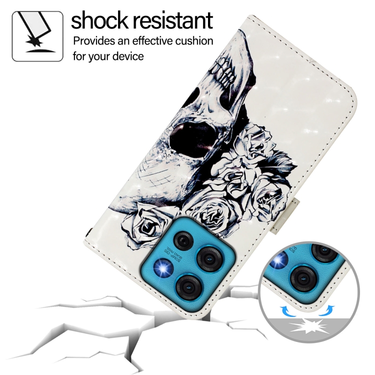 Funda de Cuero con Tapa Horizontal y Pintura 3D para Motorola Moto G75 5G (Calavera)