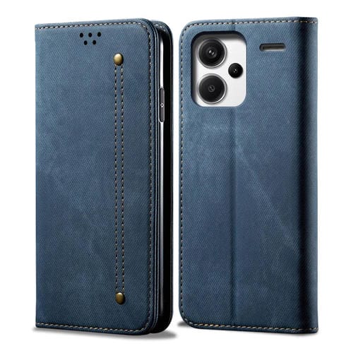 Funda de Cuero con Tapa Horizontal y Textura Vaquera para Redmi Note 13 Pro+ (Azul)