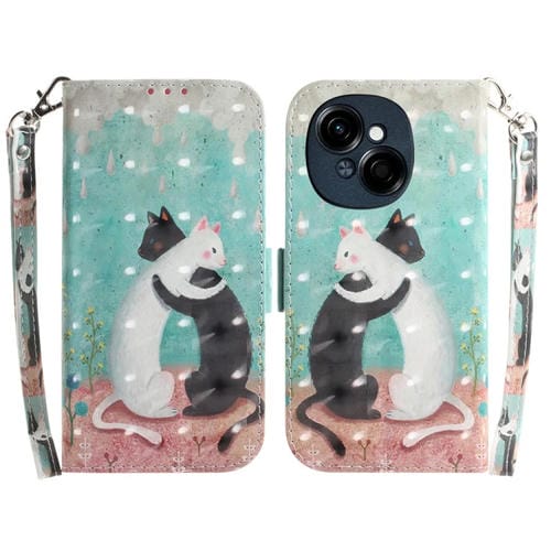 Funda de Cuero con Tapa Horizontal para Tecno Spark Go 1 Pop 9 Pro (Gato Blanco y Negro)