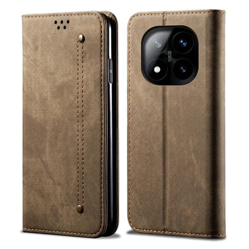 Funda de Cuero con Tapa Horizontal y Textura Vaquera para Redmi Note 14 Pro+ 5G (Caqui)