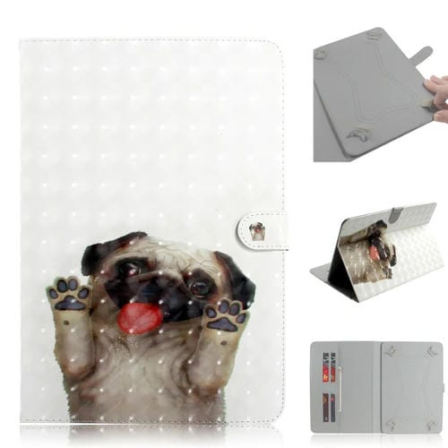 Funda Cuero Universal para Tablet 7 Pulgadas con Tapa Horizontal, Soporte, Ranura Tarjeta y Billetera (Pug)