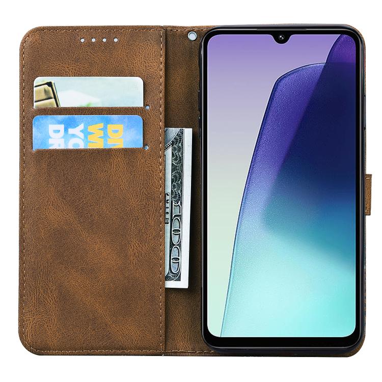 Funda de Cuero con Tapa Horizontal y Diseño de Mariposas En Relieve con Tacto Retro para Redmi A4 5G (Marrón)