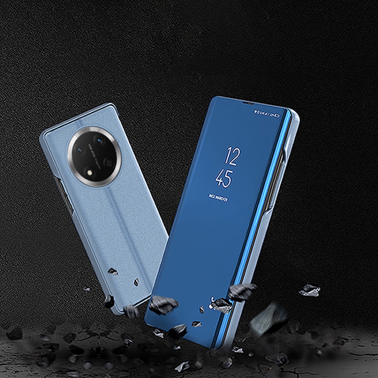 Funda de Cuero con Tapa Horizontal y Espejo para Honor X9C con Soporte (Púrpura y Azul)
