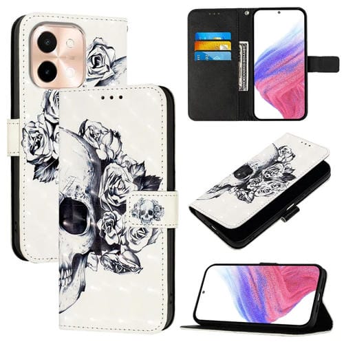 Funda de Cuero con Tapa Horizontal y Pintura 3D para Vivo Y28 4G (Calavera)