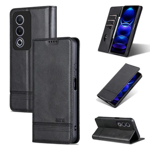 Funda de Cuero con Tapa Magnética con Textura de Piel de Becerro para Oppo A3 Energy/A3X 5G Azns (Negro)