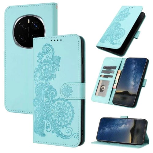 Funda de Cuero con Tapa para Honor Magic7 con Diseño Flor de Datura en Relieve (Azul Claro)