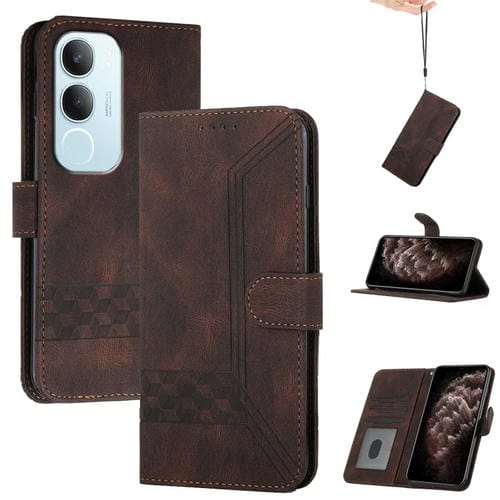 Funda de Cuero con Tapa para Teléfono con Tacto de Piel Cúbica Global para Vivo Y19S (Marrón)