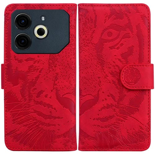 Funda de Cuero con Tapa para Teléfono Tecno Pova 6 Neo con Estampado de Tigre (Rojo)