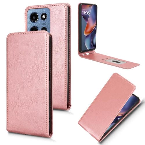 Funda de Cuero con Tapa Vertical Magnética para Motorola Moto G Power 2025 (Oro Rosa)