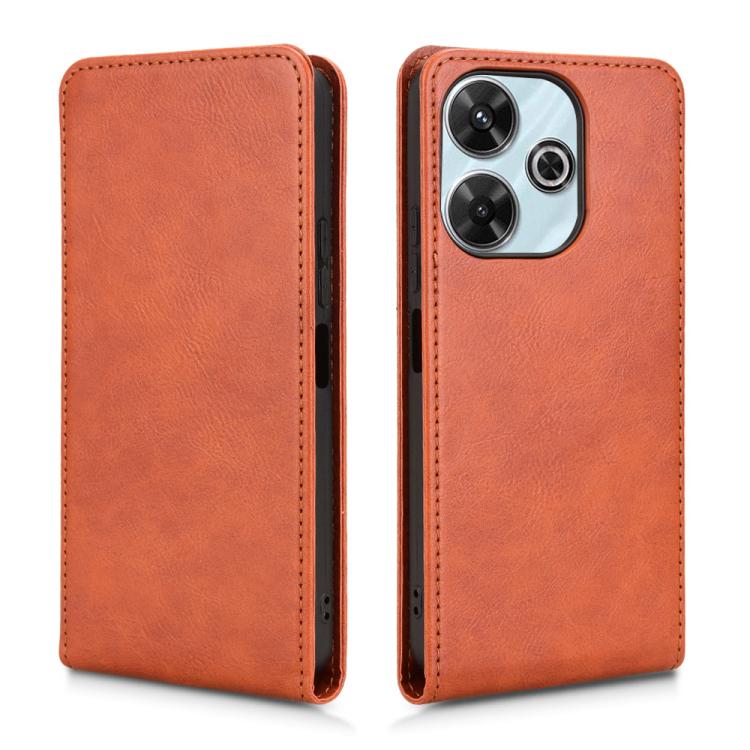 Funda de Cuero con Tapa Vertical Magnética para Redmi 13 4G/Note 13R 5G (Marrón)