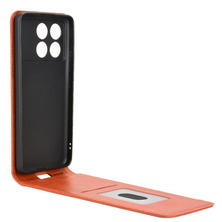 Funda de Cuero con Tapa Vertical Magnética para Teléfono Xiaomi Poco X6 Pro/Redmi K70E 5G (Marrón)