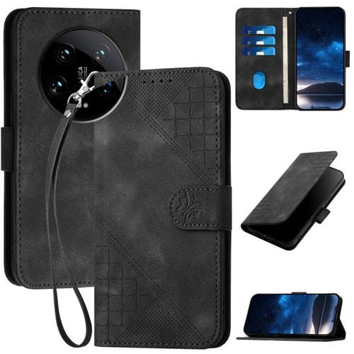 Funda De Cuero Con Tapa Y Cordón Para Xiaomi 14 Ultra Yx0080 Con Diseño De Mariposa En Relieve Y Cuadrícula (Negro)