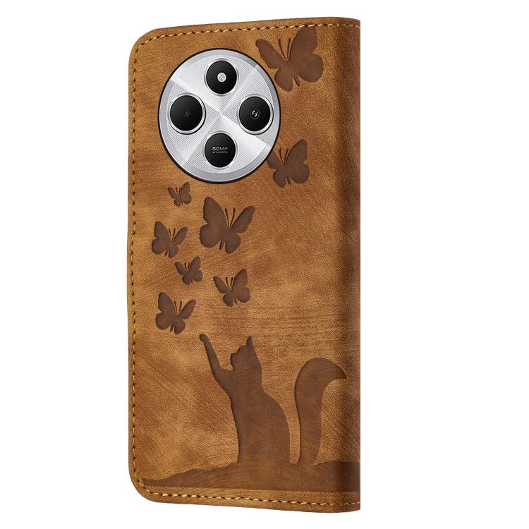Funda de Cuero con Tapa y Diseño de Gato y Mariposa para Xiaomi Poco C75 (Marrón)