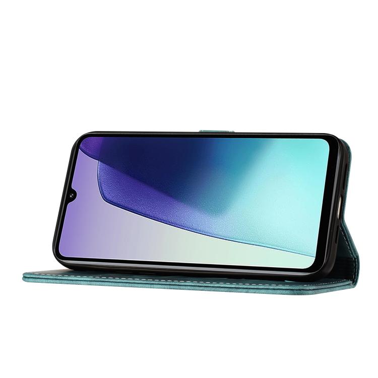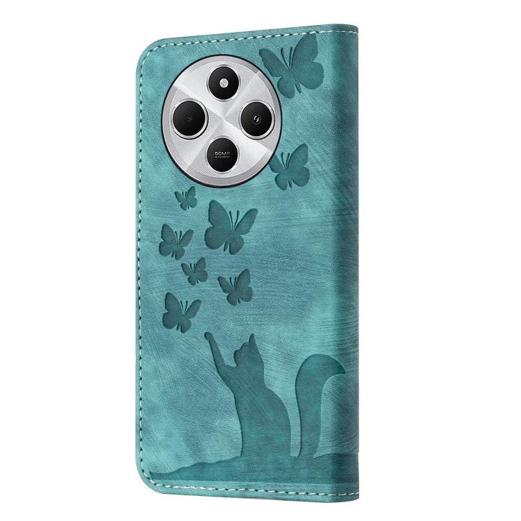 Funda de Cuero con Tapa y Diseño de Gato y Mariposa para Xiaomi Poco C75 (Wathet)