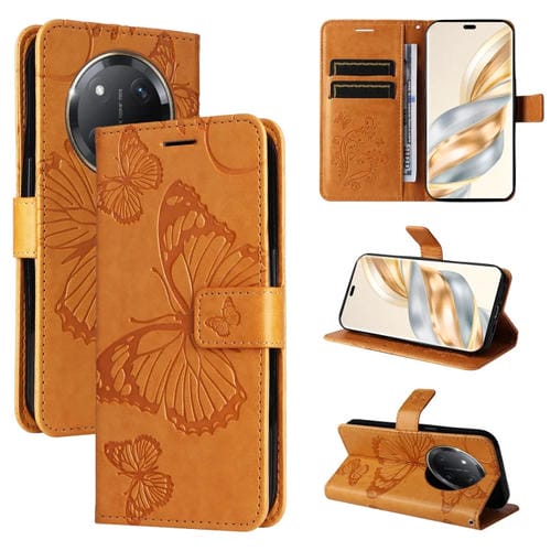 Funda de Cuero con Tapa y Mariposa en Relieve 3D para Honor X9C 5G Global (Amarillo)