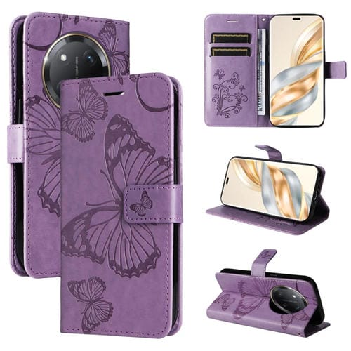 Funda de Cuero con Tapa y Mariposa en Relieve 3D para Honor X9C 5G Global (Morado)