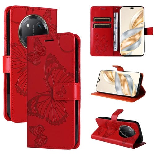 Funda de Cuero con Tapa y Mariposa en Relieve 3D para Honor X9C 5G Global (Rojo)