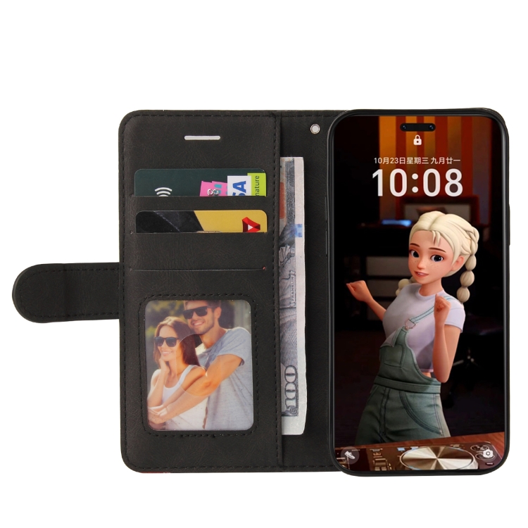 4. Función de cartera: La funda de cuero cuenta con ranuras para tarjetas y dinero en efectivo.