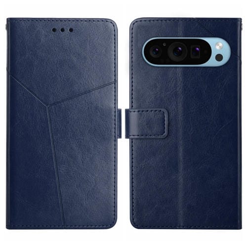 Funda de Cuero con Tapa y Patrón en Forma de Y para Google Pixel 9 Pro XL (Azul)