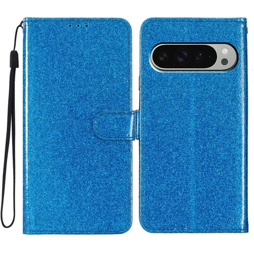 Funda de Cuero con Tapa y Purpurina en Polvo para Google Pixel 9 Pro XL (Azul)