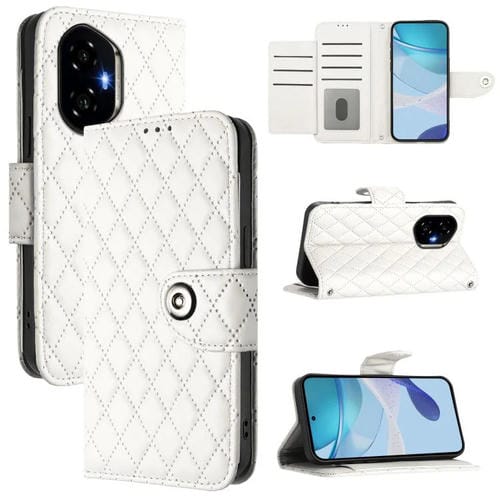 Funda de Cuero con Textura Rómbica y Cordón para Honor 300 5G (Blanca)