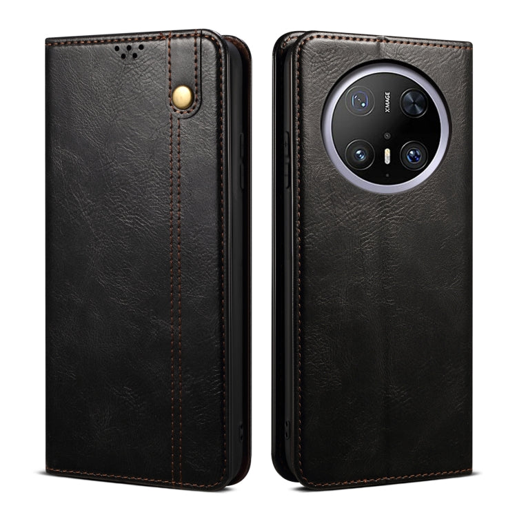 Funda de Cuero Crazy Horse con Cera de Aceite para Huawei Mate 70 5G (Negra)