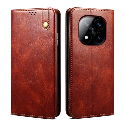 Funda de Cuero con Textura Crazy Horse y Cera de Aceite para Redmi Note 14 Pro+ 5G (Marrón)